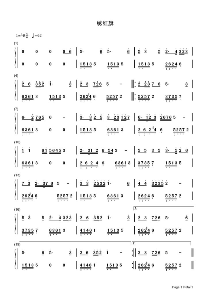 绣红旗 钢琴数字简谱